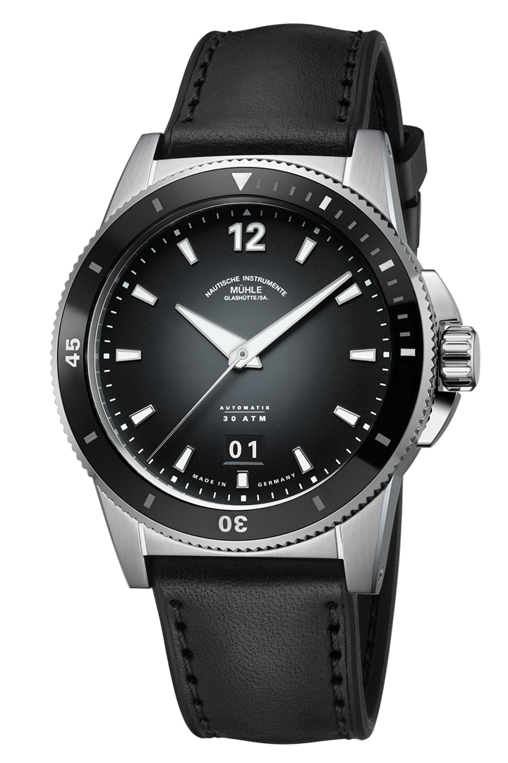 The “12,” the Mühle logo, and the prominent big date at 6 o’clock are positioned in perfect harmony on the dial. This balanced layout gives the watch a sense of calm and clarity – sporty in presence, precise in expression.